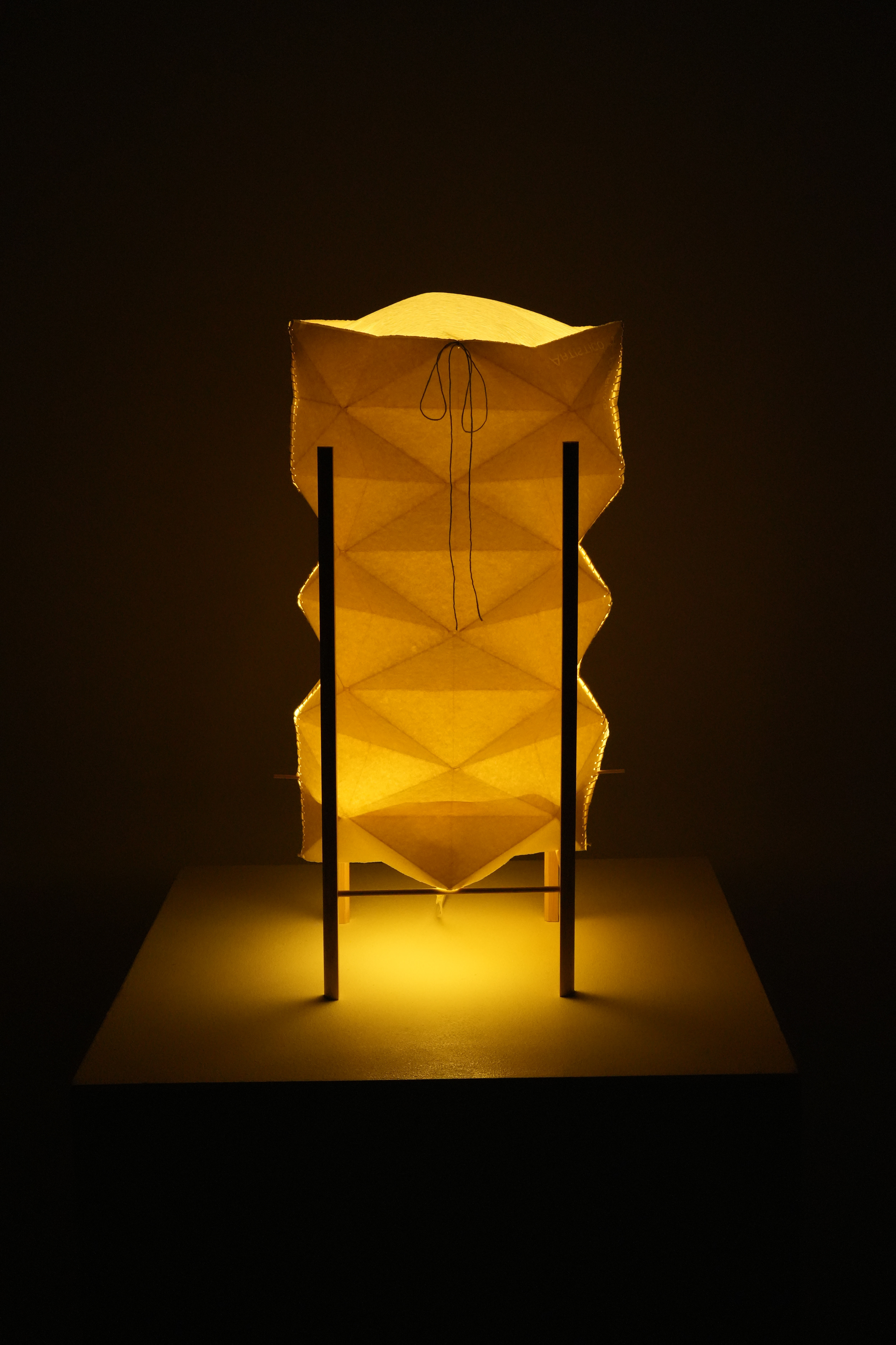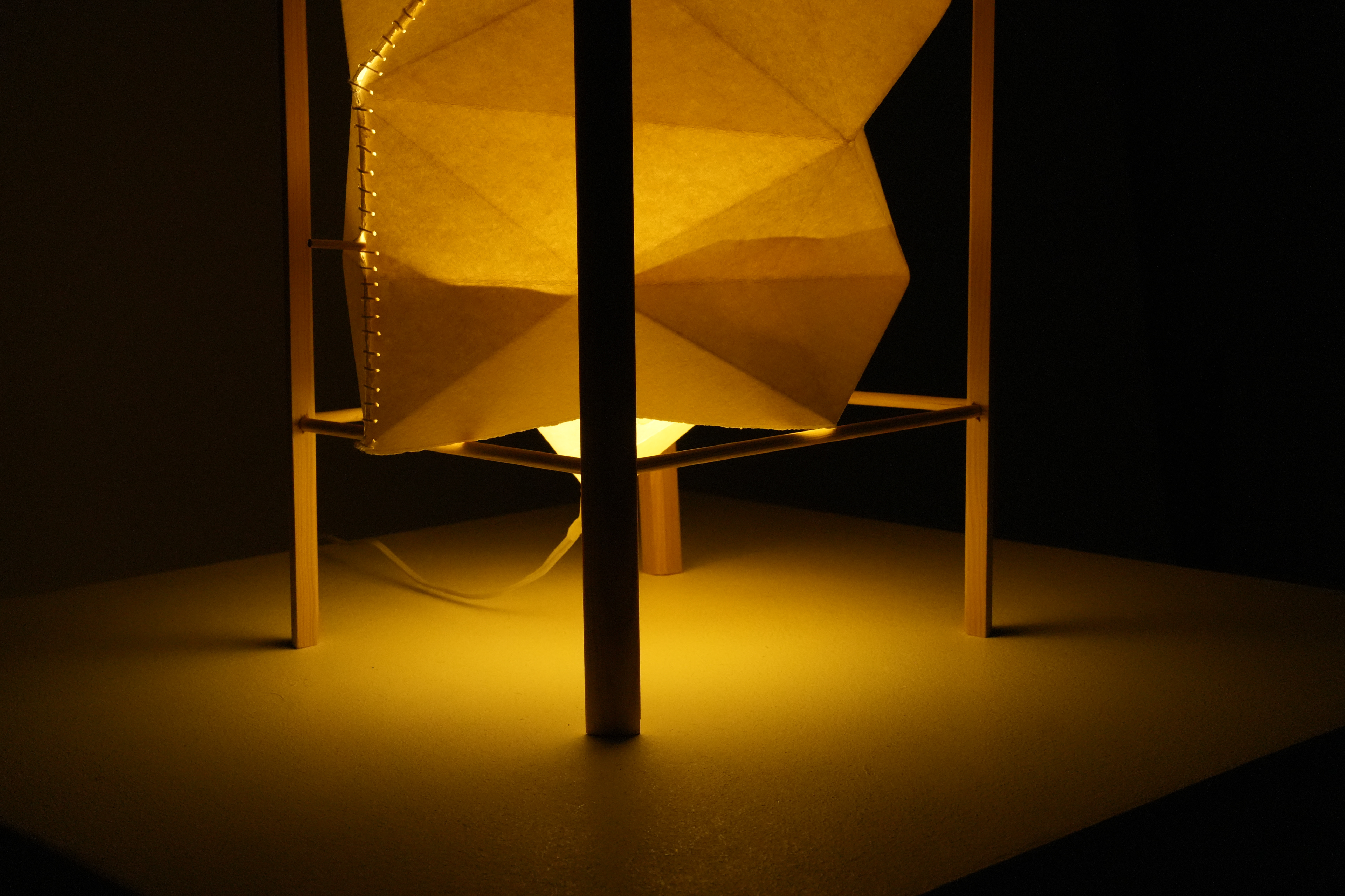 The AYRA lightning device embodies the artistry of origami, crafted from paper to emit a gentle, lantern-like radiance. AYRA serves a dual function; suspended from the ceiling, or elegantly stationed atop a table or floor with its accompanying wooden stand, infusing any space with a warm, safe and welcoming ambiance. Designed for optimal light distribution and energy efficiency, it delivers generous illumination with minimal power consumption, 1W.