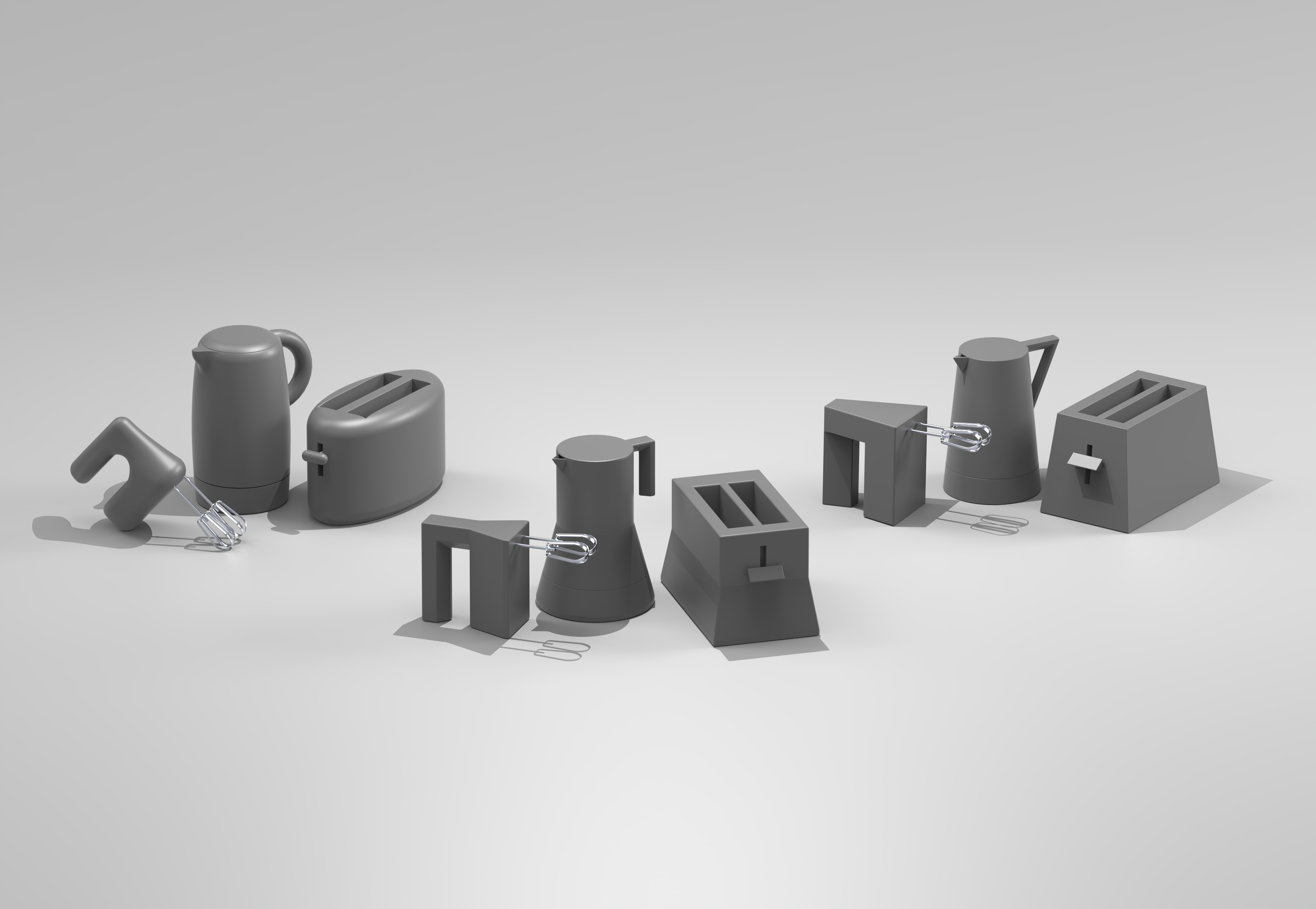 Project Brief: Design a cohesive family of three cordless kitchen products that embody a unique and recognizable design language. Each product must seamlessly incorporate all components outlined in the tech pack, including removable battery packs.